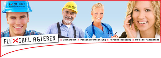 Die Axiom Nord GmbH Personaldienstleistung ist Ihr Partner bei der Suche nach einer neuen beruflichen Orientierung. Wir bieten einen interessanten und abwechslungsreichen Arbeitsplatz. Wir freuen uns auf Ihre Bewerbung.